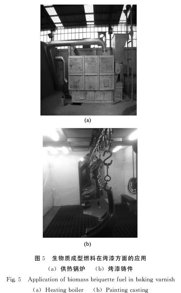 1.3需求與效益要求 市場(chǎng)是檢驗(yàn)一切產(chǎn)品的標(biāo)準(zhǔn),產(chǎn)品只有在市場(chǎng)上有需求,才能獲得市場(chǎng)的認(rèn)可與接受,最終帶動(dòng)產(chǎn)業(yè)良性發(fā)展。市場(chǎng)需求是生物質(zhì)成型燃料產(chǎn)業(yè)發(fā)展的最終驅(qū)動(dòng)力。我國(guó)生物質(zhì)成型燃料的市場(chǎng)需求主要來自于廣大嚴(yán)重依賴煤炭資源的企業(yè),依賴秸稈、林業(yè)剩余物等非商品能源的農(nóng)村居民和部分城鎮(zhèn)的餐飲店、理發(fā)店、洗浴中心等服務(wù)業(yè)小經(jīng)營(yíng)業(yè)主。北京菲美得機(jī)械有限公司抓住生物質(zhì)能利用的機(jī)遇,已研發(fā)了多種生物質(zhì)成型燃料機(jī),其公司的下屬?gòu)S都在使用自己生產(chǎn)的生物質(zhì)成型燃料,不僅應(yīng)用于飲水、取暖等生活方面,而且在鑄件烤漆的工業(yè)領(lǐng)域有了應(yīng)用(圖5),每年比以前少用3000~4000t煤,有一定的經(jīng)濟(jì)效益和生態(tài)效益。